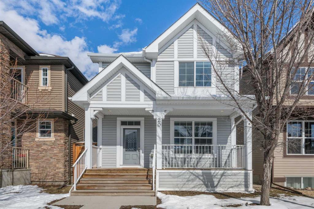 Welcome to Cranston and this executive home featuring 3 bedrooms, 3 bathrooms, and a plethora of upgrades. With over 1600 sq.ft of living space, this home is move-in ready and brimming with amenities. The main floor offers an open concept living space, 9' knock-down ceilings, an upgraded kitchen with tall cabinetry, white quartz countertops, stainless steel appliances and hardwood flooring. Upstairs, the primary retreat includes a spacious walk-in closet, a 5-piece ensuite with his/her sinks, along with two additional bedrooms, a main bathroom, and a conveniently located laundry room. The basement is ready for your personal touch with two large windows and roughed-in plumbing. Step outside to enjoy the low-maintenance front yard and landscaped backyard. This home boasts plenty of natural light from the many large windows, upgraded railing, and a double-rear detached garage. Conveniently located with easy access to all major routes, in the newer area of Cranston near schools, parks, transit, South Health Campus, shopping & amenities.