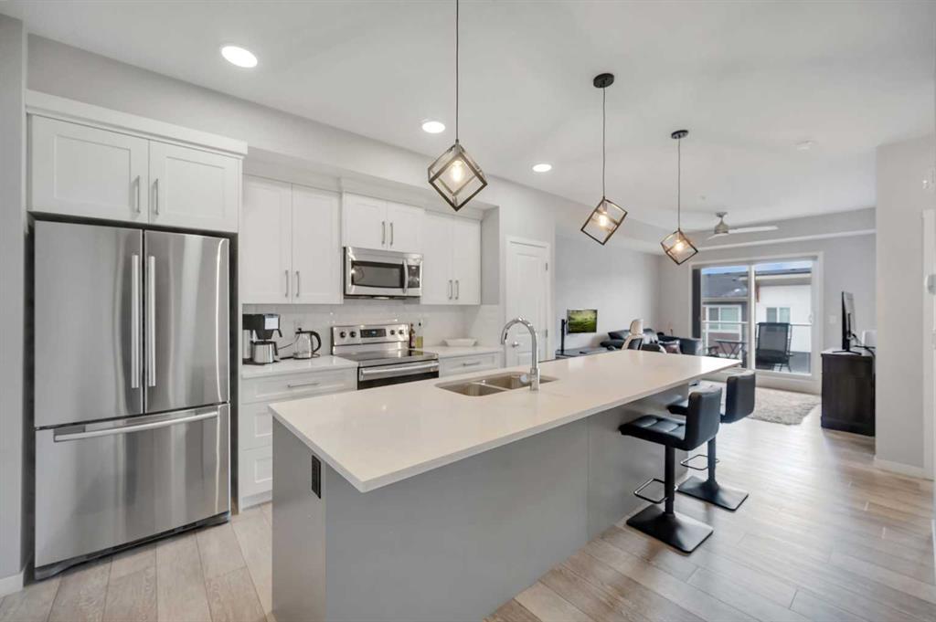 1 BEDROOM | 1 BATHROOM | TITLED PARKING | STAINLESS STEEL APPLIANCES | UNBEATABLE VALUE | TIMELESS DESIGN | Welcome to The Rise in Harvest Hills. This modern & bright 1 Bedroom & 1 Bathroom condo wows in this amenity-filled family-friendly community and boasts an impressive tone from arrival. Arrive home to the superb curb appeal & you will be wowed by the immense appeal of having every amenity within walking distance and quick access to Stoney & Deerfoot that will take you anywhere in the city. With no detail or amenity overlooked, this open floor plan condo features 9-foot ceilings throughout the kitchen, a sophisticated dining area, a living room, an oversized well-appointed bedroom, 1 full bath, and a laundry room. Only the finest materials were utilized to create design touches, including stainless steel appliances, quartz countertops, and lots of cabinet storage; seamless entertaining flourishes here with the bright & open kitchen, dining & living room flooded with natural light. Everything is remembered in this condo with a well-sized private West-facing balcony, in-suite storage, and two titled parking spots. It is close to gyms, a dog park, transit, trendy restaurants, shops, grocery, and walking paths.