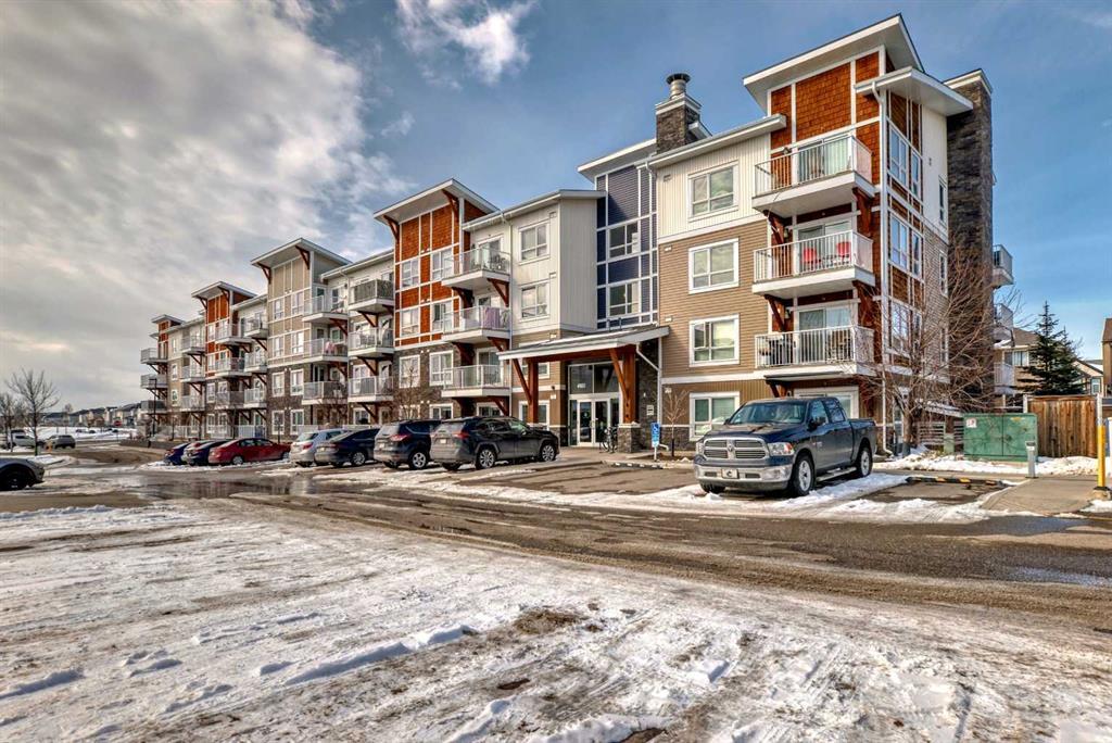 1 BED 1 DEN (with closet) 1 BATH 1 STALL PARKING. Welcome Investors and first-time home buyers to the Orchard sky in Skyview Ranch. The unit boasts an open-concept layout with generously sized bedrooms and ample storage space. The unit receives sunlight light all day long and is well lit most of the time. The master bedroom is good sized and has its own walk-in closet. The den is generously sized and could be used as a second bedroom, office or kids’ play area. The den also has a closet with ample storage space. The kitchen features stainless steel appliances, quartz countertops, ample cabinet storage, and a breakfast bar with seating. This unit has in-suite laundry as well. The 4pc bathroom has a tub/shower combo, extra storage and a single vanity that offers a good amount of storage under sink as well. The balcony offers good views and is perfect for a summer bar be que. Parking is a delight with the titled parking stall right in front of the building. A lot of visitors parking makes it convenient for guests to park their vehicles safely. Close to schools, parks and shopping areas, this unit offers everything that would make an owner comfortable.