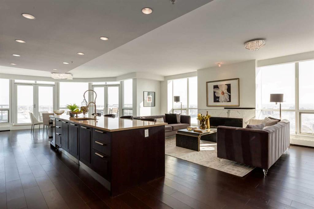 Welcome into a HIGH RISE PENTHOUSE suite with an open floor plan and breathtaking views of the city and mountains! Stepping into a large entryway, you’ll be greeted by a expansive kitchen, living room and dining space with WRAPAROUND BALCONIES. The functional layout is perfect for entertaining! Tucked away is a den with it’s own separate entrance for an office or reading nook. Floor to ceiling windows drench the space in sunlight! The bright and open gourmet kitchen offers tons of storage and is open to the family room and huge outdoor balcony make it a perfect place to entertain family and friends! Large upstairs loft would be great for entertaining or a second office, entering onto ANOTHER private balcony, a personal outdoor HOT TUB perfect for relaxing greets you with amazing views and space for entertaining! Primary bedroom with a large ensuite bath with dual sinks, oversized soaker tub, and a separate shower with access to the expansive balcony! Two other bedrooms with balcony access, one of the bedrooms with an ensuite bath, another full bath and an in-suite laundry room complete the space! The perfect space for hosting gatherings both inside and outside! Balcony access throughout from living room, ALL bedrooms and loft!!! Truly a rare find! Be part of the vibrancy of the city and upgrade your lifestyle! The Waterfront building comes with first class amenities! Concierge service, fitness center, whirlpool, steam rooms, recreation rooms, private movie theater, car wash facilities! 3 Assigned Parking stalls and a storage unit are included! Close to Princess Island Park, Eau Claire, vibrant Chinatown and the Downtown Core! Be surrounded by access to anything you need moments away! Words cannot do the views and layout justice, book your showing today with your favourite realtor! You will not be disappointed!!!