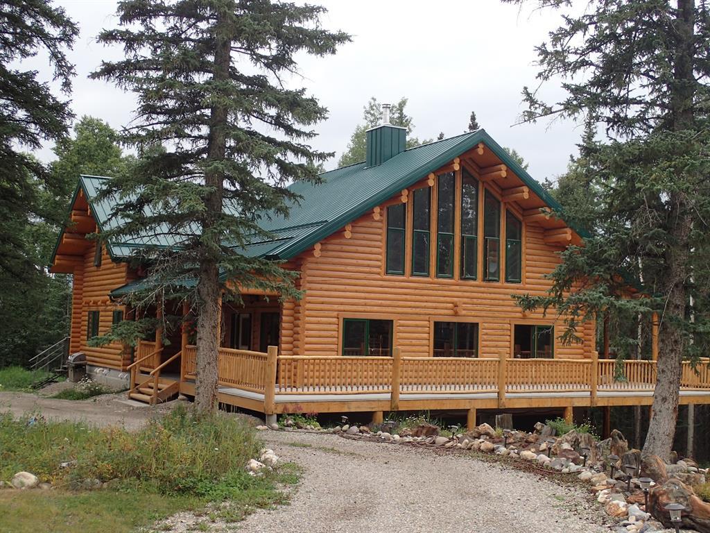 Nestled on a private, quiet street at the west edge of Hinton, this stunning log home is a masterpiece by Neville Log Homes in Kamloops, brought to life by a highly skilled log builder. Situated on a large, over 2-acre lot surrounded by untouched forest, the property offers a serene retreat with incredible income potential. The 3600+ square foot home features a fully self-contained, separate entrance 1-bedroom suite that's ideal for rental income or accommodating guests like in-laws. Previously operating as a successful Bed and Breakfast, the home boasts two bedrooms with 4-piece ensuites on the main floor, along with a large bedroom with bath downstairs, all perfect for hosting guests. Upon entering, you're greeted by a spectacular fireplace in the great room, an ideal space for entertaining. The expansive kitchen with high-end stainless appliances and an incredible pantry is a dream for culinary enthusiasts. Quartz counters add to the tasteful decor, while dark engineered hardwood floors create a warm ambiance throughout the living areas. Conveniently located laundry facilities on the main floor add to the home's practicality. Downstairs, a large recreation room awaits, along with a spacious bedroom and patio doors leading to the backyard. In-floor heating throughout the lower level and triple car garage ensures comfort year-round. Ascending the log staircase to the loft family room on the upper floor reveals amazing views through huge windows, complemented by high log ceilings and a view of the lower level fireplace. The primary bedroom on this level is expansive, offering a sitting area, working space, and a private covered deck overlooking the forest. Abundant storage is found in the family room with deep shelves behind doors. Outside, 1800 square feet of deck space provides ample room for outdoor entertaining, with options for sun or shade as the deck wraps around the house. This smart home is equipped with Nest technology for temperature control, security, and peace of mind. Truly a treasure, this property must be seen to be fully appreciated.