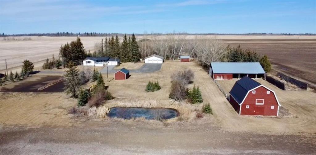 Amazing Location! TOWN WATER!! HEATED 30 X 40 TRIPLE CAR GARAGE! Nature Lover Alert! Nestled just 1 mile from the Town of Fairview, this exceptional 10-acre parcel offers a natural retreat for lovers of spacious living. This property boasts a secluded yard site with mature trees, that provides a serene atmosphere and privacy. This 1386 sqft bungalow is fully developed, features durable aluminum shingles and a fully finished basement.. Inside, the spacious kitchen offers plenty of cupboard and countertop space, complemented by a pantry and updated appliances. Hosting family gatherings is a breeze in the extra-large dining room, while the cozy living room is perfect for relaxing and unwinding. The main level hosts three bedrooms and two bathrooms along with a versatile office space. Main floor laundry room add convenience to everyday living. Downstairs, the basement includes a fourth bedroom, a sizable family room with an electric fireplace and wet bar, another 3-piece bathroom, and plenty of storage space. Enjoy picturesque views of the classic barn and surrounding grain crops, along with the ever-changing seasonal beauty. Additional features include a heated detached garage measuring 30' x 40' with three overhead doors, a massive pole shed measuring 42' x 72' for dry storage with a 13'H x 20'W overhead door, as well as an extra shed measuring 14' x 20' for additional storage needs. Cultivate your own garden in the expansive yard, complete with two dugouts for water supply and municipal water access. With a paved driveway leading up to the house and detached garage, convenience is key . This property is situated just off Highway 2 and Range Road 31, offering easy access to amenities. Don't miss out on this incredible opportunity of country living close to town. Reach out with any questions, and to book a showing!