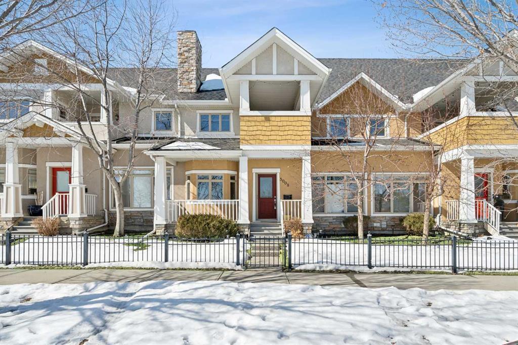 This amazing, fully finished condo is FACING MOREUIL PARK and is an easy ten minute walk to restaurants & shopping & even closer to schools! There's more that 2560 sq ft of quality living space on all three levels of this home and it features 9 foot ceilings on every level with even higher 19.1 foot ceilings above the open main floor living room! It's move in ready and highlights include the kitchen with quartz counters (2017), breakfast bar, a walk in pantry and stainless steel appliances. There's also a spacious dining area along with a cozy living room with a beautiful gas fireplace that has stone accents and an art niche above. You'll also enjoy the main floor Master bedroom with walk in closet and a stunning upgraded en suite (2018) that has double sinks and a massive walk in shower. Upstairs you'll find a large bonus room, a dedicated office space, full bathroom, a second bedroom and access to the upper deck area that has fantastic park views! In the basement there is a HUGE combination family/games room area, a work out room the could be converted to a guest bedroom/den space, a full bathroom, under stair storage and the laundry - furnace room (new high efficiency model added in 2019). Please note that there are rough ins for the washer and dryer in the main floor kitchen pantry. It could easily be converted back to main floor laundry. Also note that the attic insulation was added to in 2019. As well don't forget the insulated double attached garage with an inside entrance. Enjoy excellent access to Crowfoot Trail along with many schools including Masters academy & Lycee Louis Pasteur which are literally just one block away and Altadore Primary school and Rundle Academy that are six blocks away! This would make an excellent home for families with older kids or for empty nesters!