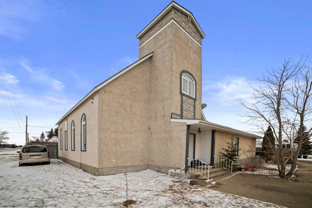 What an opportunity! With a sprawling nearly 3800 square feet of living space, this converted abode is perfect for a family on the go! With 0.3 acres on the corner right across from Bawlf's fabulous K-12 school, prepare to enjoy the convenience of small town splendor with room to roam! From the main entrance, step right into the heart of the home with this kitchen fit to build a feast, with copious cabinets & counter space. This opens beautifully into an airy Dining Room lit with coziness courtesy of the wood stove, and the central office area is a perfect fit with a birds-eye view of the common areas on the main floor. This level also has two separated wings, each with exterior doors. The primary bedroom with walk-in-closet, plus an additional bedroom, storage, laundry and a four piece bathroom comprise one, while the other is complete with a two-piece wash closet, shower room (requiring connection), utility room and space to place a kitchenette. The massive living room will have everyone congregating to relax or be rambunctious, and the expansive lower area has been enjoyed as a bonus room with a home gym, arcade and even a ball pit with a slide down from the second floor balcony! Lots of storage, access to the crawl space below and a new staircase going up to the expanded second floor - where the tower bedroom, additional bedroom and playroom are found! Outside offers lots of parking space both inside and out front of your oversized double, detached heated shop with 220 service- there is also a storage room framed at the back of the building and a fully fenced back yard facing the alley. The shingles have been recently replaced and you will enjoy municipal services along with the water treatment system with storage, newer HWT, Furnace and endless possibilities here! If you're looking for a dynamic property in a great location, this is an excellent value for your home based business, multigenerational family or simply something fantastically out of the ordinary to customize- Book your viewing here today!