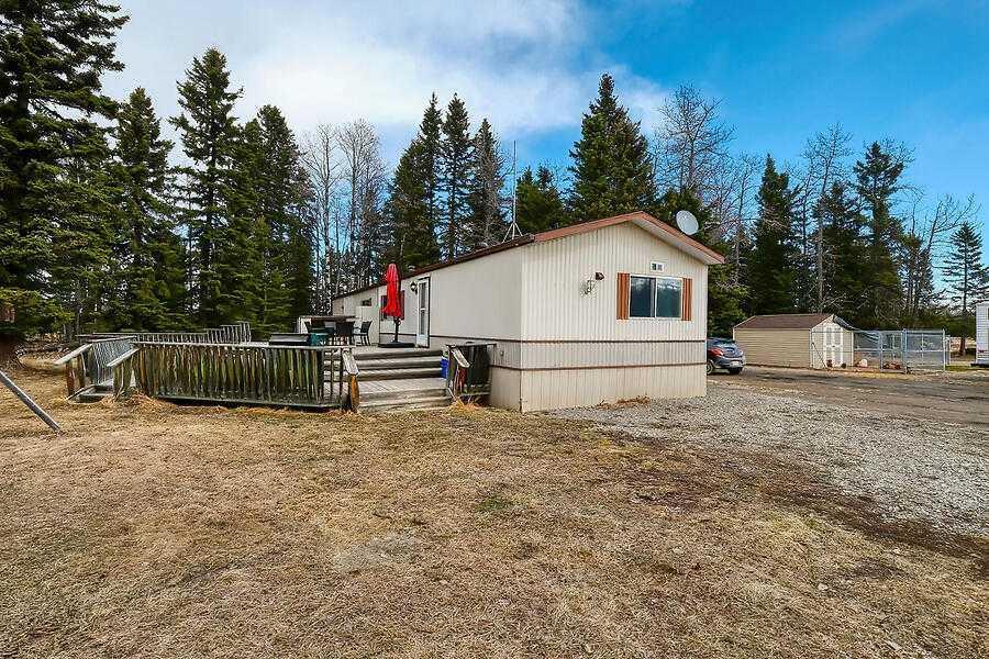 Excellent starter acreage that is located five minutes from town. This well constructed mobile has a large kitchen area and is open to a large living room that has vaulted ceilings and a wood burning stove. The master bedroom has lots of space and also has its own ensuite bathroom with a jacuzzi tub and ample closet space. The back door opens to a large deck in the backyard that is nicely shaded in the summer from the full grown trees that are on the property. Outside is a fully landscaped yard with a large garden area, horseshoe pit, fire pit area & two large garden sheds and also a kids playset. Also on the property is a large C-Can that has been converted into a mechanical / wood working shop that is included in the sale as well.