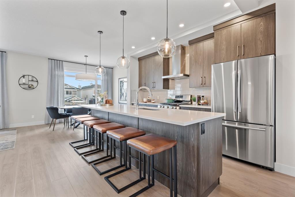 Every so often comes a property that will stop you right in your tracks. Welcome to the Ravines of Royal Oak, where luxury meets convenience. Step inside this fully upgraded, 2,091 sqft townhouse boasting one of the most popular and sought after floor plans in the complex. You'll immediately be impressed the moment you lay eyes on the main entertaining space. The kitchen sits in the centre offering full height cabinetry, quartz countertops, upgraded stainless steel appliances, including a chimney hood fan and gas stove, soft close drawers and a large island with seating for up to 6!! This open floor plan is perfect for hosting all your family and friends and just imagine having Christmas or Thanksgiving dinners with a large enough dining space where everyone can be comfortable. And if this area wasn’t spacious enough, you also have a nook for a full home office. This level also offers a walk-in pantry, double door storage closet, half bath with beautiful wallpaper and access to the large balcony with BBQ gas line. The primary bedroom is bright and has an incredible ensuite bath with dual vanities, a fully tiled stand up shower and the cherry on top is the freestanding tub and not to mention, a full walk-in closet with built-ins. The other 2 bedrooms are a great size, have large south facing windows, letting in a ton of natural light, and share another full 4-piece bathroom. One of the bedrooms has a cheater door to the bathroom and comes with a built-in study desk. Lastly, the spacious upper floor laundry room with side by side washer and dryer, extra storage and sink will be extremely useful and convenient. The downstairs has an amazing flex space, a mini bar station with fridge, a separate entrance with rear deck and access to the insulated and heated double attached garage with extra driveway parking for 2 more vehicles and Wifi door opener. This home also comes with AC, built-in shelving, 9 ft ceilings, dimmer light switches, window coverings, and LVP and tile flooring throughout. The level of details and luxury finishes this home offers have to be seen in person to be fully appreciated, it's truly an absolute 10/10 and shows like new!! If you're looking for a fully upgraded home, spacious enough for a family, with the convenience of worry free, condo living (snow removal, landscaping, exterior maintenance, garbage services) in a well-established community like Royal Oak, this is an incredible opportunity you won't find anywhere else!!! Walking distance to the Royal Oak ravine, parks, playgrounds and the Tuscany LRT STATION!! Short drive to many schools, YMCA, Royal Oak Shopping Centre (Sobey's, Walmart, Gas station, Vet, Clinic, Dentist, London Drugs. Restaurants, Banking and so much more) and easy access to Crowchild Trail ... this home truly has it all.