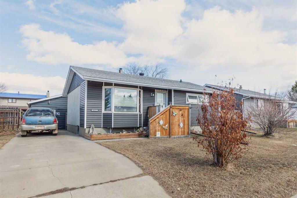 This is a nice looking, 3 bedroom, family home located in the Parkdale community in Stettler, AB. The home has neutral blue siding and a partially closed in step with landscaping around the front. There is a concrete parking pad along the side of the lot. The back yard is fully fenced with two garden sheds and a heated, double car garage which is accessed from the back alley. The back of the house also has a covered patio with sun lights, a nice place to enjoy the outdoors but keep out of the elements. Inside, the living room faces west, letting plenty of light into the bay window. This room is large enough to hold a sectional and other living room furniture. The kitchen and dining area have solid oak cabinets, an extra corner cabinet, and another bay window looking out to the back yard. The main floor also has two bedrooms and a bright, 4 pc bathroom with ample counter space. The basement has a spacious family room, a bedroom, and bathroom with shower. The laundry room has a laundry sink and extra storage space. This is a great starter home or a nice place to retire.