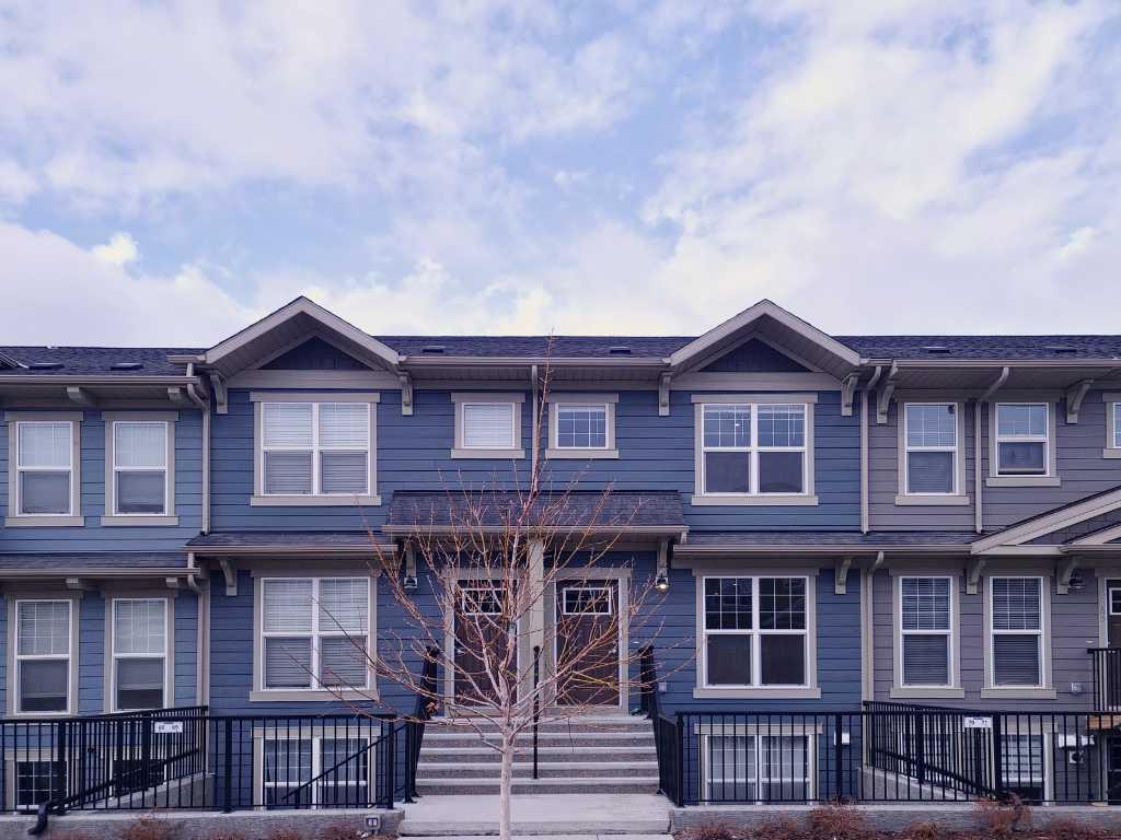 Welcome to the highly desirable community of Riverstone, Cranston. This charming townhome is perfect for your first home or an investment property. Take a step inside and find an open layout of your living room that flows into your kitchen. The main level offers a 2 piece bathroom, upgraded vinyl flooring throughout, a spacious dining area, plus a large kitchen island . Off your kitchen you will find your own fenced backyard with gas hookup. The upper level includes 2 very generously sized bedrooms. The primary has a large walking closet and 3pc ensuite. The upper level also features your stacked washer and dryer and linen closet. An additional 4pc bathroom completes this space. This unit includes 1 assigned parking stall and visitor parking available. This community has everything you need! Steps away from Bow River, skating rinks, walking paths and splash park, Tennis courts and playgrounds. Close proximity to South Health Campus, Restaurants and shopping. Don't miss your opportunity to view this property today!