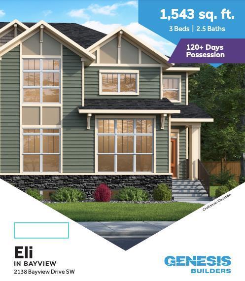 Genesis Builders introduces a new product under construction - street-side luxury townhomes with NO CONDO FEES! The Eli spec townhome offers an attached double garage with rooftop patio and offers low-maintenance living. The thoughtfully designed home offers 1543 sq ft. plus an unfinished basement with 9' ceilings, ready for your ideas. On the main floor, you will find soaring 10’6 ceilings in the open-concept living space and large windows allowing natural light to flow through the space. The chef-inspired kitchen offers sleek floor to ceiling cabinetry and stone counters and is well-equipped with stainless steel appliances. The kitchen is open to the dining and living room, which is perfect for entertaining family and friends or keeping a watchful eye on the kids. Complimenting the main floor is a convenient half bath and spacious entryway off the attached 20 x 22 garage. Venturing upstairs, you will find a spacious primary retreat with a spa-like ensuite featuring a tiled shower, dual sinks and a sizeable walk-in closet. Two additional bedrooms, a full bath, a flex room, a 4-piece bath and laundry complete the upper level. Enjoy spending time on your upper rooftop patio, which is situated above the garage and is an excellent space for entertaining. Bayview is a beautiful community with parks, benches and pathways that meander throughout the community and along the canals. Kids and adults alike will enjoy the outdoor basketball nets, gym, amphitheatre and tennis courts that will convert into a skating rink in the winter. Come and see all the amenities that the community has to offer for yourself!