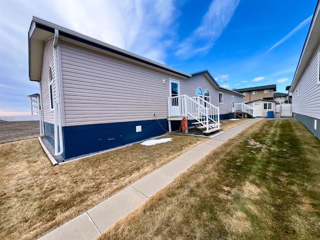 Welcome to 17 Meadowplace Drive! This immaculate and well-cared-for home is located in the most affordable mobile home park in Brooks. This property boasts regular maintenance, including new shingles installed in 2022. Featuring 3 spacious bedrooms and 2 bathrooms, including a primary bedroom with a walk-in closet and a luxurious 4-piece en-suite with a soaking tub, this home offers ample space for comfortable living. Natural light floods the interior through bay windows and a skylight, creating a bright and inviting atmosphere. The open concept living room and kitchen area with an eat-up bar provide a perfect space for entertaining and relaxation. The kitchen is well-equipped with tons of cabinets, a pantry, and modern appliances. This double-wide mobile home also offers a well-maintained exterior with low-maintenance vinyl siding and tin skirting. Additional features include central a/c, underground sprinklers, large laundry/utility room, a storage shed, workshop/mancave equipped with power and heat, and a back-up generator installed in case of a power outage- ensuring convenience and peace of mind. Located near playgrounds, French school, and ball diamonds, making it an ideal choice for families! Whether you are looking for an affordable investment opportunity or purchasing your first home, this property offers great value and potential. Don't miss the chance to make this lovely home your own!