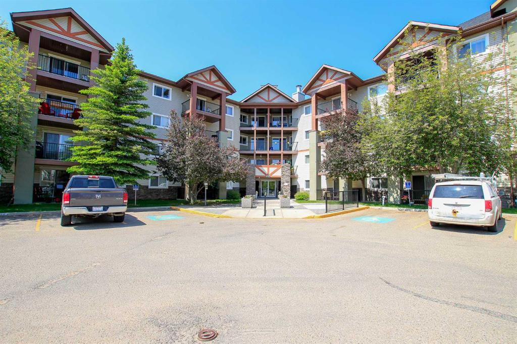TOP FLOOR ~ 2 BDRM, 1 BATH CONDO ~ COVERED WEST FACING BALCONY ~ IMMEDIATE POSSESSION AVAILABLE ~ Recent updates include; vinyl plank flooring, carpet, quartz counter tops, subway tile backsplash, updated kitchen and bathroom cabinets, LED light fixtures ~ Open concept layout living complemented by vinyl plank flooring creates feeling of spaciousness ~ The kitchen offers a functional layout with plenty of dark grey cabinets, ample counter quartz space and opens to the dining area where you can easily host a large gathering ~ The living room features a cozy gas fireplace with room for TV above plus sliding patio door that leads to the large, west facing covered balcony with aluminum railings, gas line for your BBQ or patio heater and duradek finish ~ The primary bedroom can easily accommodate a king bed plus furniture and has mirror closet doors ~ 2nd bedroom is also a generous size with mirrored closet doors ~ 4 piece bathroom has an updated vanity with quartz counter tops and is located next to the In unit laundry with a stacked washer and dryer plus built in floor to ceiling shelving offering tons of storage space ~ 1 assigned parking stall (#40) with power plus visitor parking ~ Condo fees include; electricity, gas, heat, water, sewer, garbage, recycle, common area maintenance, exterior maintenance, snow removal, reserve fund contributions and professional management ~ Pets allowed with restrictions ~ Located in south east Red Deer, close to schools, parks, playgrounds, walking trails, multiple shopping plazas and more with easy access to the highway.