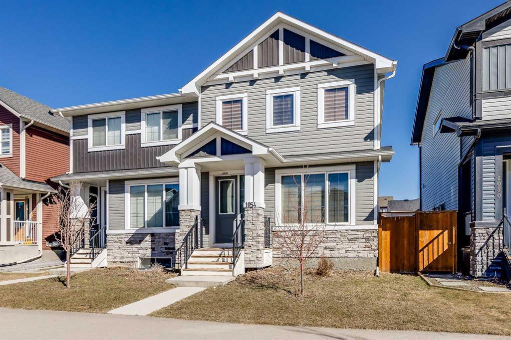 BRAND-NEW 3-bed/2.5-bath 1450+ SQFT semi-detached home STEPS TO THE POND in lovely community of Carrington! Welcome to this elegant home that comes with all of the premium features you could need like an open-concept floor plan, large eat-at kitchen island with QUARTZ COUNTERS, front porch and BACK DECK, all new stainless-steel appliances and ELECTRIC FIREPLACE! Walk up to your inviting front porch and enter into the open-concept main floor. This floor has vinyl flooring throughout, large windows to let in a lot of natural light and lots of storage available for all your winter gear. The living room has a cozy electric fireplace and opens nicely into the gourmet kitchen. Most striking is the spacious island with quartz counters giving lots of space for preparing food and casual meals. Additionally, there are all new stainless-steel appliances including a dishwasher and gas stove, and tons of cabinet space. Moving into the dining room which has been conveniently placed next to a large window and can seat at least 6-8 people, perfect for dinner parties and holidays! On this floor is also a 2pc powder room for guests and a back door for access into the yard. Heading upstairs, you will find a generously sized master bedroom complete with all of the bells and whistles like a walk-in closet, and a 4pc full ensuite bath. Across the hall there is an additional 2 bedrooms, another full 4pc bath to share and laundry on the upper level to finish off the upper level. The back door opens onto a solidly-built back deck, which is begging for some summer BBQs and a FULLY-FENCED IN, PRIVATE YARD that is perfect for gardening or DOG-LOVERS! At the end of the yard is a DOUBLE DETACHED GARAGE with access through the PAVED BACK LANE to complete the home. The location here is A DREAM! You are ACROSS FROM CARRINGSBY LAKE in the front, and CARRINGTON POND in the back! Not only that, proximity to many more places to enjoy nature and catch some rays including ROTARY-MATTAMY Walking/Biking Path, Carringsby Park, Slides Playground, Livingston West Ponds, Carrington Playground and many more. PLUS, lots of amenities in the community like No Frills Grocery, Gas, Convenience, Restaurants & Dining or Retail Shopping at the nearby Cross Iron Mills (10 MIN DRIVE). Jumping in the car: Downtown is a 22 MIN drive away (23.2KM), Airport is 15 MIN (13.8KM), and Banff is 1 HR 19 MIN (132KM).