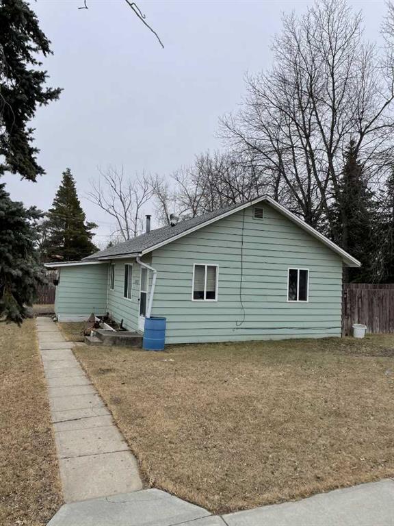 Cozy 2 bedroom bungalow on a large lot within a 3 minute walk to downtown Mayerthorpe. Open floor plan, 2 living rooms or possibly a third bedroom, convenient main floor laundry hookups. The large corner lot is partially fenced and offer a garden area. This home has a long term tenant and makes a good investment property.