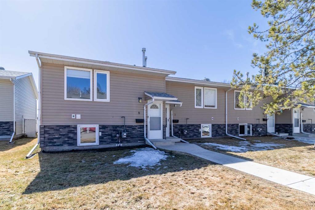 Close to a natural treed area with lots of wildlife this 3 bed, 1 & 1/2 bath condo is situated in Riverside Meadows. The home is an end unit of the row home/town house style fourplex & shares only one common wall on the structure. The home features stylish and tasteful renovations and upgrades throughout, mechanical updates include: A new H/E furnace (2018), Hot water tank (2019), new washer and dryer (2023) renovation's to the Kitchen flooring as well as an opening up of walls separating the kitchen & living room space (2021), Additional updates to the living room floors and basement flooring installed & ceiling converted to drywall from tiles (2018). The back yard offers a rear porch with BBQ, & a fully fenced yard with small pebble stones yard space for easy clean up after a pet. A powered parking stall to plug your car in for cold winter start-ups, Lawn care and snow removal are included in monthly condo fees, Tile and Vinyl plank flooring compliment updated vinyl windows. A steel insulated front entry door with a front doorbell camera provides extra security to the home. This lovely updated condo is turn key and ready for a new owner w/ quick possession available, a great property for a 1st time buyer, home owner ship is in your future!!