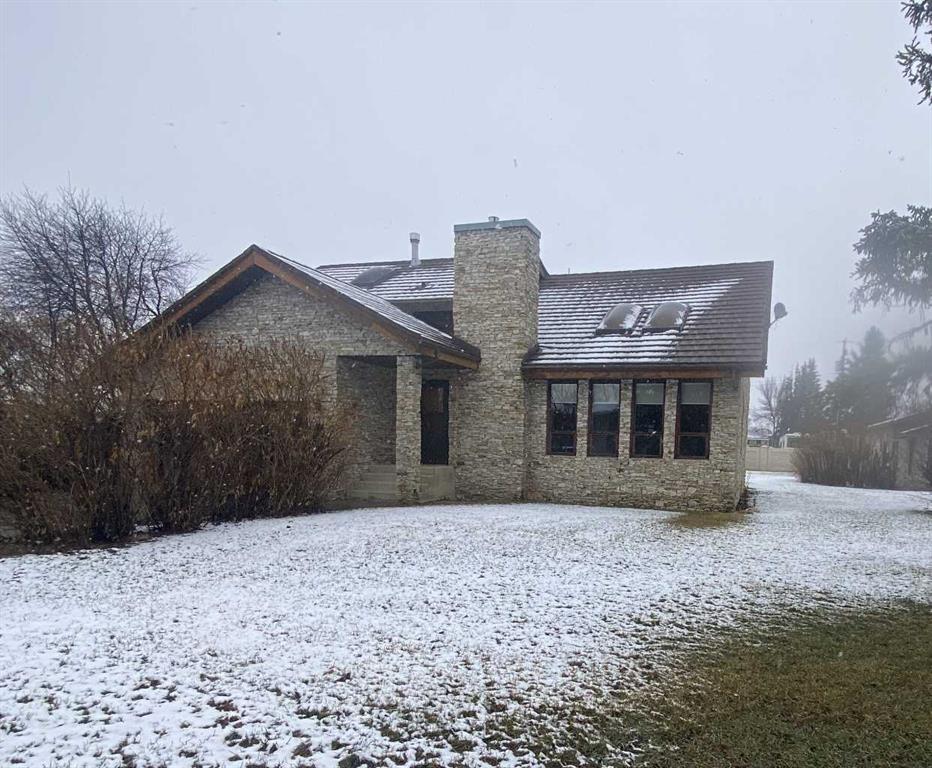 Let the sunshine in through the numerous skylights in this 5 bedroom, 4 bathroom, unique family home. The kitchen has a significant amount of cupboards and counters including the walk-in pantry. There is a breakfast bar/desk along with the island boasting a built-in range. The expansive eating area in the kitchen has enough space to host a large dining room table and a big comfy couch, keeping the family engaged in the same room without being in each others way. There is a formal dining room or office if you prefer, adjacent to the kitchen and this opens through beautiful French doors into the main living room. The vaulted ceilings, natural light and the slate rock faced natural gas fireplace is sure to impress. The tongue and grove cedar ceilings throughout most of the home adds to the character and charm of the unique design. There is a 2 piece bath located next to the attached garage entrance and main floor laundry. Upstairs there are 4 bedrooms, all of which have walk-in closets in using the primary bedroom that also has a 3 piece bath and built-in vanity. There is the main 4 piece bath that completes the upper level.The basement is a generous space that will provide endless hours of fun and games with the entertaining kitchen/bar and the tournament sized billiards table. The 5th bedroom is also located in the basement along with a 4 piece bath and a decorative slate faced fireplace. Throughout the home you will find creative spaces for all of your storage needs. The heated attached garage has high ceilings that could easily accommodate shelving for additional storage needs. The mature property has another garage measuring 38x20, an oversized deck, partial concrete fence and a garden for all of the green thumb enthusiast. Underground sprinklers, metal roof, central air, central vac are also notable features of the one-of-a-kind custom built home. Call to book a showing today and GET MOVING IN THE RIGHT DIRECTION!