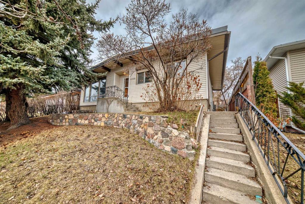 LOCATION! Don't miss out on this beautiful 3 bedrooms + 2 den bungalow in the Charleswood community! Charleswood is an established sought-after community bordering Nose Hill Park. This bungalow has over 2000 sqft of developed space and sits on a 51ft by 110ft lot! Close to the University of Calgary and easy access to all amenities. The front of the home has a beautiful elevated front lawn with 2 levels where you can sit and relax outside in summer. Upon entering the home, you'll be embraced by a warm and cozy layout on the main floor. A spacious entrance guides you to the spacious living room, where there's an oversized window bringing in tons of natural light. The main floor has beautiful high vaulted wood ceilings with exposed beams. The layout includes a living room, dining room, a kitchen with tons of cupboard space and a separate eating area, three bedrooms and one bathroom. Perfect for growing families. Downstairs, you'll discover a fully developed lower level that offers even more space, versatility and loads of storage space. Two additional dens in the basement, flex area, additional 3 piece bathroom and laundry room. Basement windows are not egress. In the backyard, you'll find a large oversized garage, mature trees, a wood deck and plenty of green space. Don't miss this amazing house!