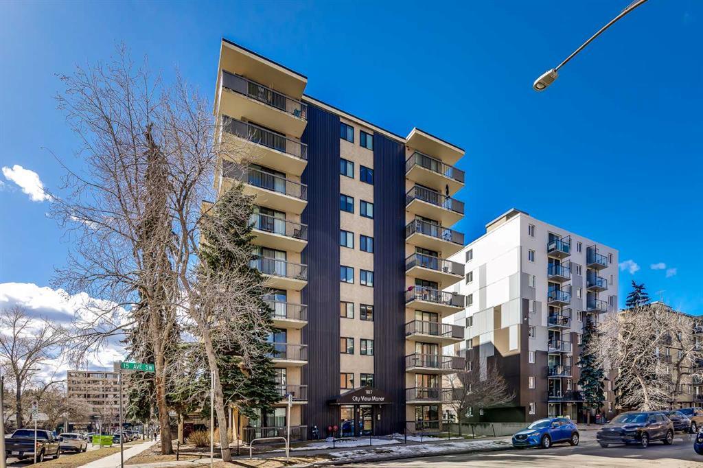 Discover urban sophistication at its finest in #603 at 1107 15 Ave SW, where modern elegance meets unbeatable convenience. This apartment-style home boasts 2 bedrooms and 1 bathroom , spanning 825 square feet of meticulously curated space. As you step through the entrance, laminate flooring leads you to a living area illuminated by natural light, offering a versatile space for relaxation or entertaining. The kitchen dazzles with quartz countertops and stainless steel appliances, complemented by fresh paint throughout. Retreat to the upgraded tile shower, or enjoy the convenience of built-in closets in both bedrooms. Plus, indulge in the luxury of underground parking, ensuring your vehicle is always secure and accessible. Step outside onto the south-facing wraparound balcony, where panoramic views of vibrant 17th Avenue unfold before you, offering a front-row seat to the energy of the Beltline community. Never worry about elevator wait times; despite the buildings small size, the building features 2 elevators for seamless access. Beyond the home, The Beltline community beckons with its eclectic amenities, including shopping, restaurants, nightlife, and bike paths, all just steps away. Immerse yourself in a community where diversity thrives and culture intertwines with creativity, offering endless opportunities for enrichment and enjoyment. All windows and patio door replaced in 2014, this home epitomizes urban luxury. Welcome to the gateway of Beltline living—welcome home.