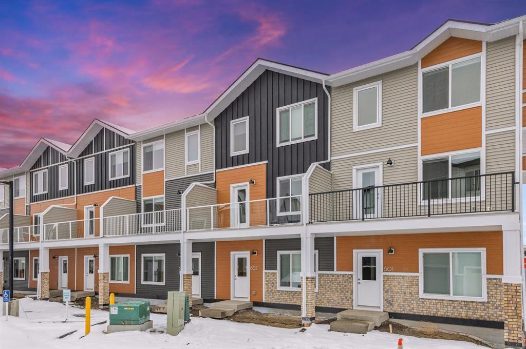 Welcome to Unit #602 at Pine Creek Towns, a standout opportunity for first-time homebuyers or investors seeking modern living in Calgary's vibrant South West. This brand-new, ready-to-move-in 3-storey townhouse boasts 1662 Sq. Ft. of meticulously designed space, complete with 4 bedrooms, 2.5 bathrooms, and a double attached heated garage. Conveniently located across from visitor parking and near established retail amenities, this unit promises low monthly maintenance fees within a burgeoning community. Pine Creek Towns sits as a beacon of development, offering residents not only a place to call home but also easy access to grocery stores, shops, restaurants, and entertainment at Shawnessy Village, Silverado Shopping Center, and the forthcoming 60-acre Township project along 210th Ave. The natural beauty of the foothills is just a stone's throw away, with efficient travel links through Calgary’s Ring Road, Macleod Trail, and the Somerset / Bridlewood LRT station further enhancing your living experience. Inside, the townhouse unfolds across three levels: the main level features a versatile full bedroom/office and a garage ensuring direct access to your home; the middle level captivates with its open-concept living area, a kitchen adorned with quartz countertops, a double island, stainless steel appliances, extensive cabinetry, and a pantry, complemented by a sizable balcony with a BBQ gas line; the upper level offers tranquility with 3 bedrooms, 2 full bathrooms, including a primary suite with a walk-in closet and ensuite, alongside the convenience of side-by-side laundry.