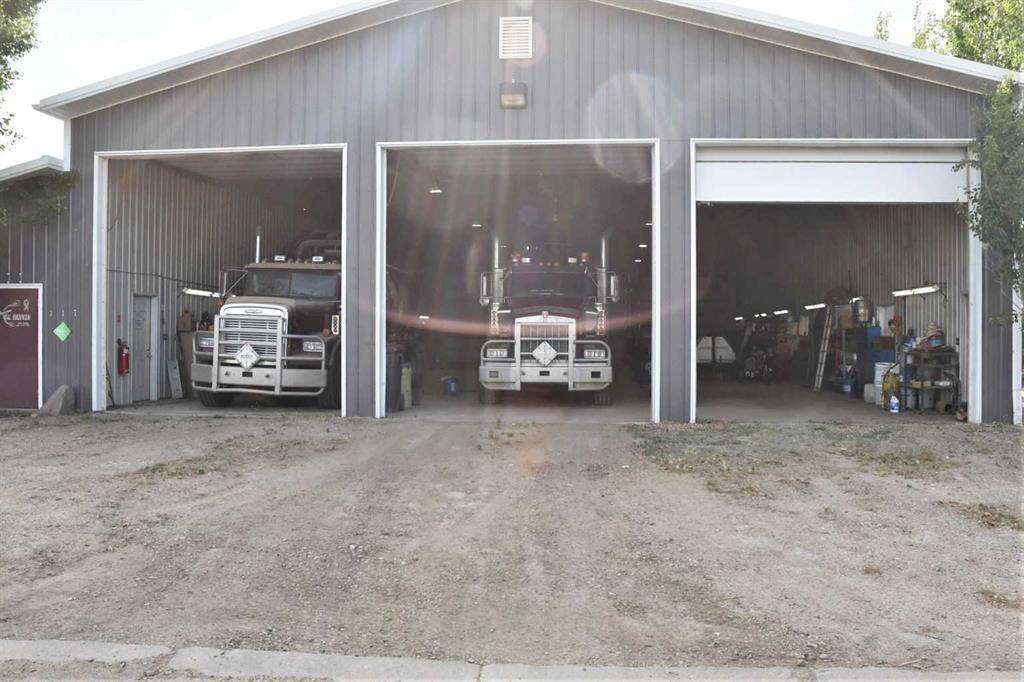 THIS SHOP IS THE 'WORKHORSE' OF ALL SHOPS! LOADED WITH ALL THE BELLS & WHISTLES, THIS SHOP IS READY FOR NEW OWNERS. Located just off the Trans Canada Hwy in Bassano, Alberta this location features high visibility from the #1 highway. Convenient access of approximately 1 hour to Calgary, 30 minutes to Brooks, & 1.5 hours to Medicine Hat. This beauty features a 494 sq. foot modern reception area features 3 working stations complete with modern countertops & stunning cabinetry. Bar-height countertops provide a relaxed atmosphere after a long day. The reception area is also plumbed for a dishwasher. Separate 132 sq feet laundry room as well as 96 sq foot 3 piece bathroom make shop life VERY convenient. Metal lined walls in shop, 2" water line, all metal exterior, LED lighting, welding outlets, 2 stage in-floor drain, 3 phase power, insulated 6" sloped concrete floor slab, exterior vapor lighting, 6....yes 6.... 14' X 14' drive thru overhead doors with 6 remotes! The large corner lot features plenty of parking for all your equipment storage requirements. This property and shop are priced to sell....don't miss your opportunity to purchase this fully loaded property for less than building your own. Looking for more land adjacent to the shop...Lot 7 Block 2 Plan 0513203 which measures 64'.84 X 210".36 X64'.76 X 210.30 has a garage on it, and can be purchased separately.