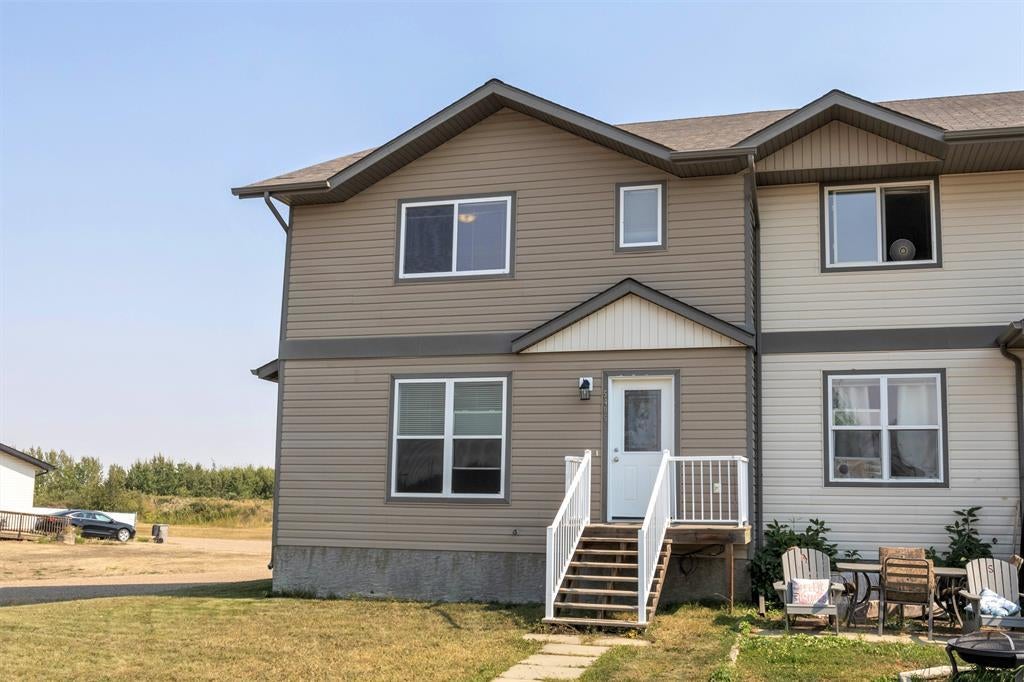 Looking for an affordable home or an income property? This 3 bedroom, 3 bathroom family residence is an end unit in a 4-plex situated on the north edge of Stettler. Inside, the living room is spacious, has a gas fireplace, and is open to the kitchen. Here there are maple colored, wood cabinets, a pantry, stainless steel appliances including stove with flat cooktop and hood, dishwasher, and fridge. A large window faces the back yard so you can keep an eye on the kids. Just off the kitchen, there is a half bath as well as the back door to a deck. Upstairs, there is a spacious master bedroom with a walk in closet and ensuite bathroom with shower. There are 2 more nice sized bedrooms as well as a 4 piece bathroom with maple colored, wood cabinets. The basement is a blank slate so you can design it exactly how you like. There is a park directly in front of this property and an undeveloped area to the back, making this a quiet neighborhood. If you have kids, this is a great location as the playground is just around the corner.