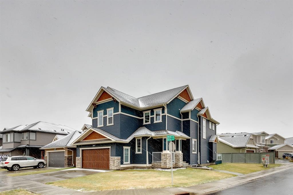 NO EXPENSE SPARED with this EXECUTIVE BEAUTY on a MASSIVE CORNER LOT across from a GREEN SPACE & PARK! Rare find with this phenomenal FULLY FINISHED 2 story in one of the best new neighborhoods Airdrie has to offer! This FAMILY HOME includes 5 BEDROOMS + HOME OFFICE + 3.5 Baths and over 3700 Sq Ft of living space. Tons of natural light throughout this open plan with the entire back wall of the house loaded with windows, 9' / vaulted ceilings & open design plan. Designer colours, upgraded fixtures, BARN DOORS, Rustic Accents & more! Convenient home office on the main level to ensure you have a bigger/brighter working space. Gorgeous Kitchen with Custom Cabinets, Built-in WOLF appliances, induction WOLF cook top, stone counters, BUTLERS COFFEE BAR, large pantry & high-end millwork. MASSIVE Island, ample cupboard (under cabinet lighting) & counter space and large dining area sets this home apart from the rest! Beautiful stone fireplace is the focal point of your living room, upgraded tiled flooring, A/C, Underground Sprinklers, section of artificial turf, central vac system, gas line to future garage heater, this home is LOADED UP! Step onto your very own PRIVATE DECK with gas line to the BBQ & glass panels to CAPTURE THE BREATHTAKING VIEWS of THE PARK, maintenance free decking......everything you can think of & more! The upper level includes a HUGE VAULTED BONUS ROOM, Retreat to your PRIMARY BEDROOM with VIEWS, SPA-LIKE full en suite, ONE-OF-A-KIND walk-in closet (again custom closet organizers) & access to the UPPER LEVEL LAUNDRY. 3 more generous bedrooms (with walk-in-closets) & another full bathroom complete the upper nicely. Basement is tastefully developed with LVP flooring a HOME GYM/REC SPACE, rough-in for wet bar, ANOTHER FULL BATHROOM with tiled shower & a very large 5th bedroom with yet another WIC & lots of storage space. Oversized Double Attached Garage (TANDEM DEEP) for the EXTRA TOYS or possible third small car & professional landscaping just add to this incredible pkg. Too many upgrades to list, you just HAVE TO SEE IT! Walking distance to parks, paths, amenities, schools & easy access out of town for the commuter. A TRUE EXECUTIVE EXPERIENCE! Original owners are offering a TURN KEY home loaded with upgrades. IMMEDIATE POSSESSION AVAILABLE! Book your private showing today!