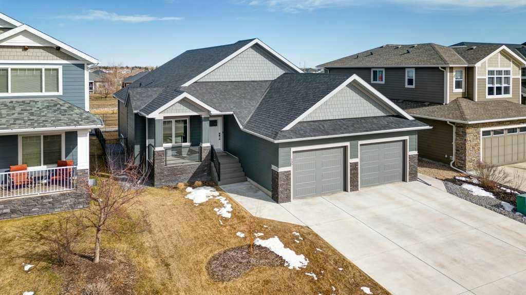 137 Wildrose Crescent located in Strathmore just 30 minutes east of Calgary. This home has a gorgeous, open floor plan with all the modern finishes. Beautiful, white custom built cabinetry with quartz countertops and birch inserts along with soft close hardware. A walk through pantry which leads you to the mudroom and laundry room and your 25x26' heated garage. A huge primary bedroom on the main level is complete with a lovely ensuite and walk-in closet. The lower level hosts 2 more bedrooms and a recreation room and entertainment area which also has rough ins for a future bar area. The 25x12' covered deck is spectacular enabling you to spend time outdoors in all weather if you so desire. Importantly, this home with built with upgraded insulation, triple pane windows, central air, hardy board siding and underground sprinklers to assist you with keeping the landscaping attractive. Located on the irrigation canal and in the friendly community of Wildflower, you have access at your back yard to the town's bike and walking paths. Make this home yours by calling your favorite Realtor today for a viewing!