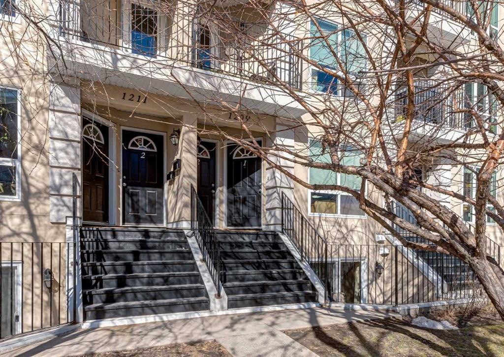 Discover urban living at its finest in this spacious townhouse spanning 1130 square feet across two meticulously designed levels! This 2-story gem boasts 2 bedrooms, 2 full bathrooms, and a fully finished basement, offering ample space for modern comfort and style. Step into the inviting main floor, where a bright living room welcomes you with a cozy gas fireplace and expansive windows showcasing scenic views of Barb Scott Park. The main level also hosts a convenient full bathroom with a large shower, a generous dining area, and a lovely kitchen featuring quartz counters and stainless steel appliances, complemented by a sizable walk-in pantry. Venture downstairs to find two generously sized bedrooms, each with its own unique charm. One bedroom has access to a large patio through patio doors, perfect for enjoying the outdoors. The primary bedroom boasts an ensuite bathroom for added privacy, while both bedrooms offer ample storage with walk-in closets. The lower level is completed by a hallway space perfect for a home office and a mechanical room with laundry facilities. Secured parkade ensures convenience and peace of mind. Each unit includes a storage cabinet at the front of the stall, adding to the practicality of this incredible property. Pet friendly complex with board approval, enjoy using the park directly across the street. Prime location situated only blocks from 17 Ave, downtown, and grocery stores; many of the best restaurants and shops are only steps away. Floor plans and a 3D tour are readily available, providing a glimpse into this stylish townhouse!