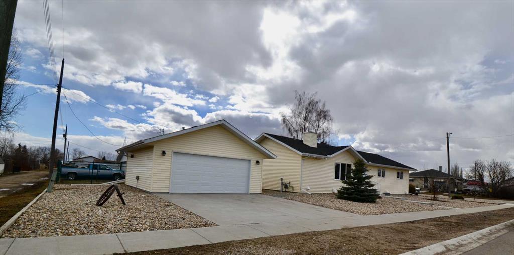 WOW! Wonderful TURNKEY home - perfect for RETIREES, COUPLES, SINGLES or SMALL FAMILY with IMMEDIATE POSSESSION. Sprawling 1500+ sq. ft BUNGALOW on a huge CORNER lot in the quiet town of Beiseker. Absolutely MOVE IN READY condition. OPEN design concept with living room, kitchen and dining area. Freshly painted and up to date on ALL MAINTENANCE. This is a custom built home with 2 SUPERSIZED bedrooms + large den (so large - that it could be a 3rd bedroom) and 4 piece bathroom. Primary bedroom is spacious with cheater door to the main bathroom. All bedrooms have GLEAMING HARDWOOD FLOORS. The main areas are all ceramic tiled - so NO carpet - which makes this home ULTRA pet friendly. Lots of storage and room for an additional 2 piece bath in the laundry room if you wish. The basement is a clean crawl space - great for additional storage - as all the utilities are located on the main floor. The kitchen is a dream with loads of cupboards, an island with sink and counter space, large stainless steel fridge, new built in dishwasher and GOURMET GAS RANGE. The living room has a corner stone gas FIREPLACE which brings a coziness to the space and the home. Central vacuum included as an added convenience. The garage is a spacious double size that is INSULATED AND HEATED. The backyard is FENCED and comes with sheds while the front yard has low maintenance landscaping, paved driveway and paved walk ways and plenty of room for parking. If you are looking to downsize to an easy living lifestyle in your own detached home on its very own lot for a VERY AFFORDABLE PRICE - HERE IT IS! Beiseker is 42 minutes to the YYC Airport, 30 minutes to Airdrie, 33 minutes to Coscto and CrossIron Mills, and 40 minutes to Drumheller. Beiseker has a grocery store, school, restaurants, farmer's markets, ongoing events and many other amenities. Small town living - with an easy commute to everywhere.