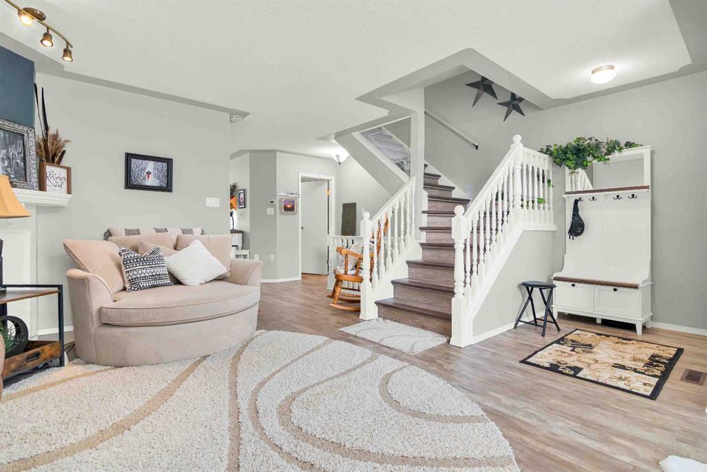Nestled within the picturesque San Paloma development, this beautifully maintained 2-story home boasts a prime location facing a green space. Ideal for families and pet owners, these condo/ townhomes offer proximity to schools, parks, golf courses, and various amenities, including the college, with no age restrictions. Upon entry, you're greeted by a modern aesthetic featuring vinyl plank flooring, and ample natural light flooding through the expansive front windows. The main level showcases a spacious living room with cozy fireplace, a well-appointed kitchen with white cabinets, a large island, corner pantry, and dining area, along with a convenient 2 pc bathroom and laundry room. Step outside to your private fenced patio and deck, with access to the single attached garage. Upstairs, three bedrooms await, including a primary bedroom with a walk-in closet and cheater door to the 4 piece bathroom. The lower level offers versatility to customize according to your preferences. Condo fee's are 310.00/ monthly and they cover exterior maintenance, garbage removal, snow removal, reserve fund contributions and condominium management. Experience comfort, and a vibrant community lifestyle at it's finest.