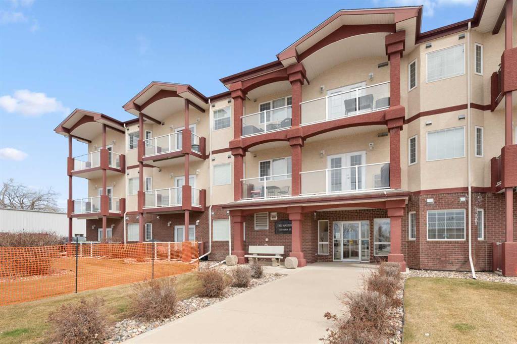 Indulge in the effortless allure of Redcliff living with this charming 2 bed/2bath condo nestled on the main floor of The Madison just STEPS away from the main entrance. Brimming with comfort and convenience, this vacant haven is available for immediate possession, freshly painted to welcome you home. Step into a realm of delight where every detail has been attended to with care. This unit features new appliances including a fridge, dishwasher, stove, and OTR Microwave, fresh paint job, and wallpaper infuse each room with a vibrant ambiance. The heart of this unit beats with the rhythm of open concept living, drawing you into a world of possibilities. The primary bedroom is spacious and features a walk-through closet leading you to a 3-piece ensuite. The 2nd bedroom can be used as a guest room or flex space. Finishing off this functional layout is a 2nd bathroom with washer and dryer conveniently available. A spacious deck (21'7"x 5'7") beckons you to unwind amidst the embrace of warm, sun-kissed days, offering a private sanctuary for relaxation. Tailored for adult living (45+), this abode extends a warm welcome to furry companions with pet-friendly restrictions. Revel in the ease of condo living with utilities covered by condo fees, leaving you free to enjoy the finer things in life. Enjoy close walking proximity to parks, library, greenhouses, and everything else Redcliff has to offer. Check out the virtual tour and book your showing today!