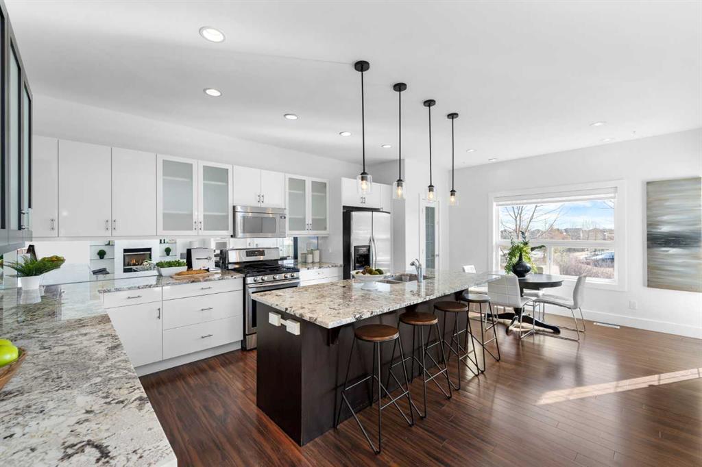 Sunlight, sun bright, vaulted ceiling I think this might... be the house you've been waiting for! Can you imagine family life in this fabulous home perfectly located on a quiet no through street and backing onto a pond? This beauty offers a spacious main floor that welcomes you with a quaint front room adjacent to a large formal dining area and a sequestered den/office and that just the front of the house. Find your way to the back where everything opens up in a grandiose manner! From the massive kitchen island to the bright and airy living room, the living space will most certainly be the centre of family life and entertainment. Upstairs, the joy continues with a sizeable flex/bonus area open to below, 2 significant sized additional rooms and bathroom, and a primary suite including 5 piece bath and large walk-in closet, a charming retreat. The walk-out basement is bright and offers extensive options for your family or potential future investment. With two bedrooms, a full bathroom, wet bar and large rec room, this space has plenty of potential. Backing onto a green space/pond (please ignore city's current maintenance efforts) the serene setting is sure to enhance your summer bbq's and evening walks. Located 2 mins from Stoney Trail the city of Calgary is at your fingertips! Book your showing today!