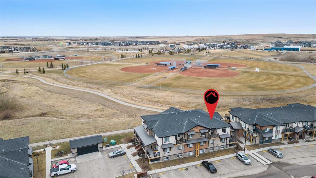 Welcome to this move-in ready townhouse with a 10/10 location next to Chinook Winds Park and with an incredibly rare to find 3 PARKING STALLS! This is one of Airdrie's most sought out locations close to shopping, grocery stores, bars, restaurants and next to Chinook Winds Park which offers walking/bike paths, a spray park, skate park, ball diamonds, an outdoor ice skating rink and a large green space. This open concept unit with 10 foot VAULTED CEILINGS and in-floor heat has a sunny living room and dining area with a kitchen that hosts beautiful granite countertops, a pantry and stainless steel appliances. The large primary bedroom easily fits a king sized bed and hosts a 3 piece ensuite bathroom with a granite countertop vanity and a large walk-in closet. Adjacent to the kitchen is the second bedroom, a private balcony, laundry closet and a second full bathroom, also with a granite countertop vanity. This property is a hard to find bungalow style townhouse with 3 parking stalls (2 titled, 1 assigned), an excellent location next to Chinook Winds Park, it's move-in ready and at a great price point!
