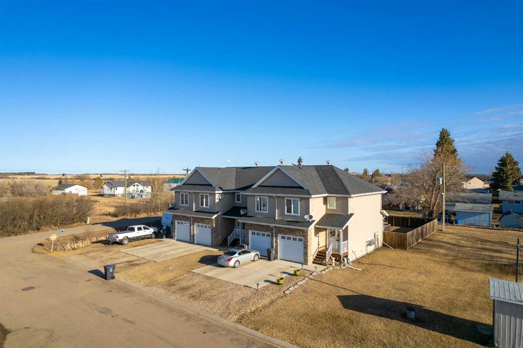 Tucked away in the tranquil community of Blackfoot, Alberta, this charming townhouse offers the perfect blend of serene living and convenience, being just minutes away from Lloydminster. You'll enjoy the peace of a quiet neighborhood with the advantage of city shopping just a short drive away. Unlike typical city townhouses, this home features a large, private backyard that's fully fenced, providing a great outdoor space for relaxation or play. The exterior of the townhouse is striking, with a single car garage and stunning stonework that boosts its curb appeal. Inside, the kitchen is a dream for those who love to cook or entertain, boasting plenty of cupboards for storage and an eat-up peninsula island for casual meals or socializing. The home accommodates with 3 bedrooms and 4 bathrooms, ensuring enough space for everyone. The primary bedroom is especially luxurious, complete with a walk-in closet and a beautiful ensuite bathroom, offering a private retreat within your home. Additionally, the basement features a beautifully completed bathroom, and the rest is partially finished, leaving room for your personal touches or to keep as is for extra storage or living space. This property strikes a perfect balance between quiet living and the convenience of being close to town, making it an attractive choice for many. Whether you're looking for your first home or a peaceful retreat close to the city, this townhouse in Blackfoot is sure to impress.