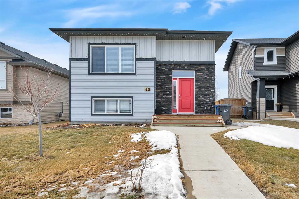 Visit REALTOR® website for additional information. Welcome to this Beautiful & Bright bi-level in Penhold, AB ~ Perfect for families or for 'right-sizing'! Built in 2016 & still in Pristine condition, this home features contemporary decor, high ceilings & an open concept. The kitchen boasts plenty of white cabinets, stainless appliances, & a corner sink overlooking the backyard, plus a convenient breakfast bar. On the main floor are two bedrooms & 2 full baths with dual closets in the master & a full 4 pc ensuite. Below is a fully developed basement with a large rec room, 2 more bedrooms & a full bath. The home is very clean, with no carpets, smoke-free, and pet-free. The lot is quite large with plenty of room for fun & parking or a future garage! This home provides comfort, convenience, and modern amenities in a pristine condition, ideal for relaxation and enjoyment.
