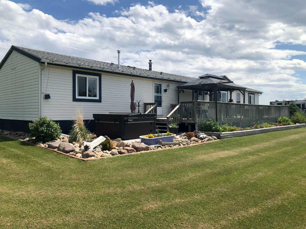 When your lifestyle demands more space for family and maybe for driving your rig home , then this may be the perfect scenario . The enticing view of this high land property will have you drive up the hard packed gravel lane way that leads to the wide turnabout and side lane parking close to the home. A property that offers substance , privacy, peace on 7.19 acres zoned CRA. Close access to highway 598 and 12 and still only 15-20 minutes east of Rocky Mountain House. The 2002 Modular Home is meticulously maintained, neat and tidy. Entire home repainted and all flooring changed to vinyl plank(2021). Starting at the South east end of the home is what was 2 bedrooms now converted to one large bedroom with 2 closets.( could be converted back) Next room is a 4 pcs. bathroom conveniently across from the front entry. Then we come into the bright open concept area with vault ceiling is the large living room, dining room and spacious kitchen with moveable island. Heading to the north west end is the Den or Theatre room that provides the perfect setting for endless family times together . For the added ambiance the theatre room opens into the addition. The addition (2009) well planned for a back entry space that is warm and cozy the pellet burning stove provides. The sloped ceiling assists in additional heat rising into the home. In this addition is also a bedroom and another room that provides as a pantry and extra storage. The north west end of the home presents the Primary large bedroom, a walk-in closet plus a separate 4 pcs. en-suite. The exterior of the home offers 48 ft. by 12 ft. railed deck, with gazebo . Landscaped yard with raised flower beds , 2 large sheds and yard light on the electrical pole finishes this fine package. Property offers great locations for that custom shop/garage or animal shelters the way you would like it to utilize them how you would like. Modular is on Screw steel pilings and welded to the frame.