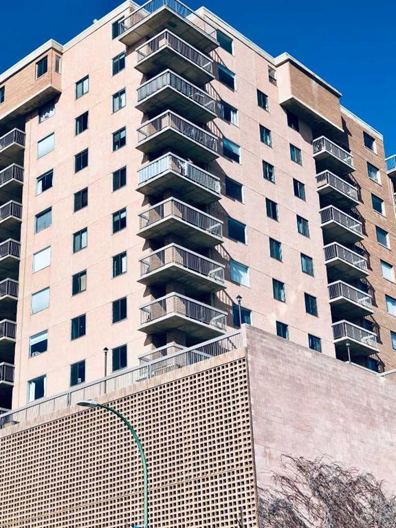Affordable! Classy! The view of the mountains and the City-scape add to the draw of this condo unit on the SW corner of the building giving lots of natural light. There is enclosed and secure parking too! The condo is well maintained with new paint. The open floor plan gives a spacious feeling. 2 bedrooms. The laundry area is conveniently close. The condo building is very well maintained and close to clinics, bus, and downtown amenities. Ready for immediate possession. Fees include all utilities and more!