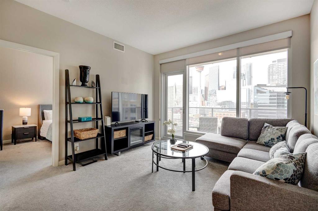 Welcome to your urban oasis in the heart of Calgary's vibrant downtown core! This stunning 2-bedroom, 2-bathroom condo in the prestigious Alura building offers the perfect blend of luxury living and convenience. As you step inside, you're greeted by an abundance of natural light pouring in through the windows, framing breathtaking views of the city skyline. With an open concept layout, the living space seamlessly flows into the modern kitchen, boasting quartz countertops stainless steel appliances. Enjoy the convenience of in-suite laundry and step out onto your private balcony to soak in the sights and sounds of downtown Calgary. With a secured titled, underground parking stall, plus an assigned storage locker in a secured locker room, you’ll enjoy an abundance of storage space. The Alura building itself is a haven of amenities, including a dedicated concierge, sleek elevators, and a fabulously equipped state-of-the-art gym with everything you need for your daily workout routine. On the same floor as the gym, you can step outside and discover a large outdoor common patio area, ideal for entertaining guests or simply enjoying the fresh air. With everything you need right at your doorstep, including stampede grounds, shops, restaurants, and entertainment options, this condo offers the ultimate urban lifestyle. Plus, all furnishings, small appliances, kitchen items, and decor may be for sale. Ask for More Details! Schedule a viewing today and experience downtown living at its finest!