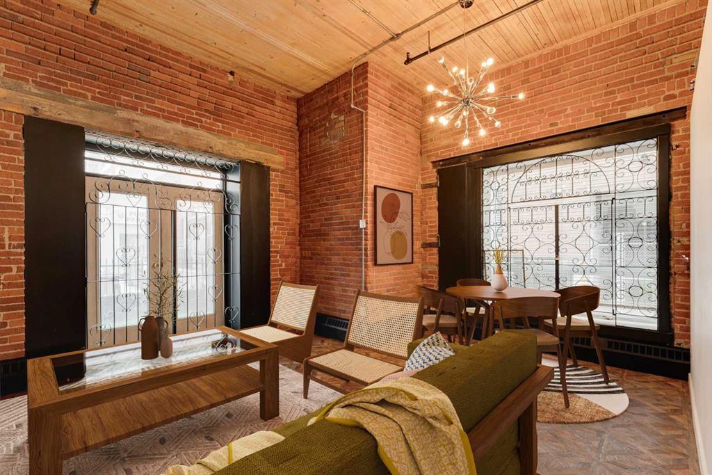 1 BEDROOM | 1 BATHROOM | 760 SQFT | 12' CEILINGS | ORIGINAL BRICK WALLS | PRIVATE COURTYARD | Welcome to this stunning one bedroom condo in the coveted Hudson Lofts. This building was originally built in 1909 by the Hudson's Bay Company and is now a unique mixed-use commercial/residential building providing you with the opportunity live/work in the unit. Enjoy the condo's character with original brick walls, black iron details, unique flooring, exposed beams and natural light from the massive windows. Cozy up to the gas fireplace in the living room during winter evenings or head outside through the french doors onto the outdoor private courtyard to entertain on summer nights. The open layout includes a spacious kitchen with a gas range, granite counters, convenient island and plenty of cabinet space. The condo has also been converted to fit one bedroom, a 3-piece bathroom, in-suite washer/dryer and extra cupboard space. This unit also includes an assigned parking spot, large storage space and is conveniently located close to restaurants, bars, shopping and the downtown core. Don't miss out on the chance to own a piece of Calgary's history and book your private showing today!