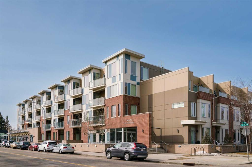 Are you ready to be dazzled? With a Walk Score of 85 and Bike Score of 90, this exceptional one bedroom unit with city skyline views was built by Truman homes and is situated on the penthouse level directly adjacent to a fabulous rooftop patio with spectacular mountain views . This upmarket unit is being offered fully furnished! Yes, you heard it! Everything you need to be set up for your inner city life has been carefully curated in this delightful unit. Whether you are looking for a luxury apartment, a great investment property or a pied-a-terre close to the core, shopping , restaurants , SAIT, U of C and the Foothills Hospital, this unit offers a lock and leave lifestyle, quality construction and superior finishings. The kitchen lacks for nothing with its high quality appliance package including 5 burner gas cooktop, hidden hood fan, B/I microwave and oven, B/I refrigerator and a pull out pantry. The cabinetry is a combination of white lacquer and grey wood accentuated by a timeless silver grey mosaic tile backsplash . The kitchen island with upgraded pendulum lights boasts a quartz countertop, deep stainless steel sink and single handle faucet. The air conditioned spacious living room has plenty of room for a sectional, a chair, and side table with a B/I desk discreetly situated between the kitchen and living room. The primary bedroom holds a queen size bed, side drawers and a generous closet with mirrored glass doors with a cheater door to the spa-like bathroom with a spectacular chandelier, gorgeous terrazzo tile flooring , Carrara marble walls, vessel sink, soaker tub and glass shower. There is also full size washer and dryer tucked away for your convenience. The entrance way houses additional closets and another B/I desk. This unit comes with an indoor titled parking stall plus a separate storage unit . Close to loads of shops, restaurants, parks and the bike path, this unit is a must see!