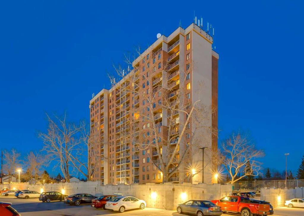Welcome to the Fortress in Dalhousie! This cozy gem of an apartment is within walking distance to the the C-Train, abundant local amenities, making shopping and dining out a breeze. The quaint kitchen boasts stainless steel appliances, charming robin egg blue cupboards, plentiful counter space, and the standout feature of tiled baseboards. This 693.2 sqft apartment has two bedrooms and one full bath. Located on the twelfth story, this apartment offers unobstructed east and west mountain facing views, along with a spacious west-facing private balcony, prepped for relaxation. This unit also comes with an assigned ground-level parking stall and visitor parking. Included in this complex are: indoor heated swimming pool, fitness center, tennis court, party room and bike storage. Adding to the safety of Fortress, is the security cameras on each floor and surrounding the building. Close to the University of Calgary and SAIT, don’t miss this opportunity to make this apartment your home!