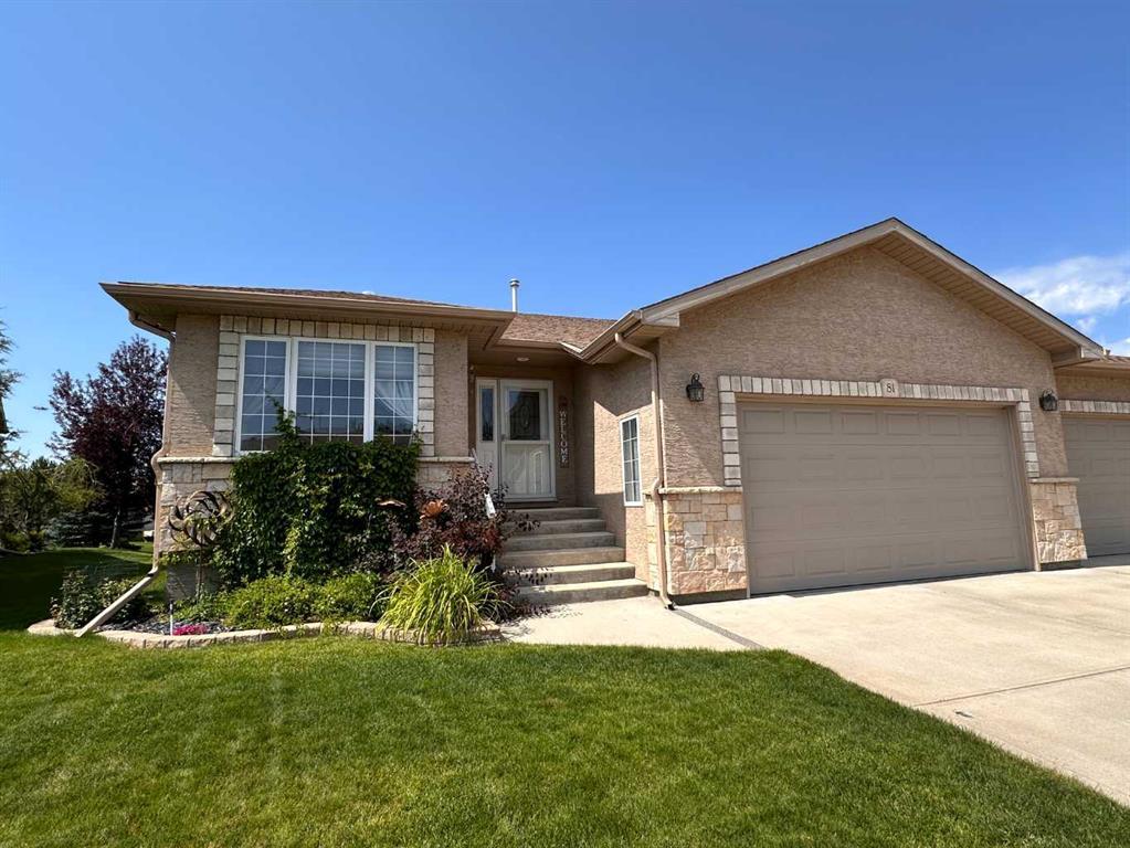 Welcome to 81 Sandstone Pl, an upgraded bungalow condominium ideally located backing onto a park with pathway in the desirable Park Meadows neighborhood. This home has everything you’ll need including 3 bedrooms, 3 full bathrooms, double attached heated garage, main floor laundry room, sunroom, deck and fully finished basement. The main level features an open plan highlighted by vaulted ceilings, maple hardwood flooring, a skylight and large windows providing plenty of natural lighting. In the spacious kitchen you’ll find plenty of cabinets and counterspace with a large island and corner pantry. Just off the dining area is access to the 3-season sunroom (could be used year round as it has a register for heat), and a deck when you prefer to sit outside, and a gas line for a BBQ. A gas fireplace is perfectly located in the corner of the living room for those cold winter days. The primary bedroom offers a 3-piece ensuite including a walk-in shower and a walk-in closet with built-ins. Also on the main level there is an office/den, full 4-piece bathroom with tub and a laundry room complete with cabinets and counter space. Downstairs is home to a large family room with another gas fireplace, 2 more bedrooms, both with walk-in closets, a 3-piece bathroom and a storage room with plenty of built-in shelving. Additional features include central vacuum with floor sweep in the kitchen, LG washer and dryer, water softener, underground sprinklers, garburator, and a high efficiency furnace and hot water tank. Condo fees are affordable at only $350/month. This condo is definitely worth seeing!