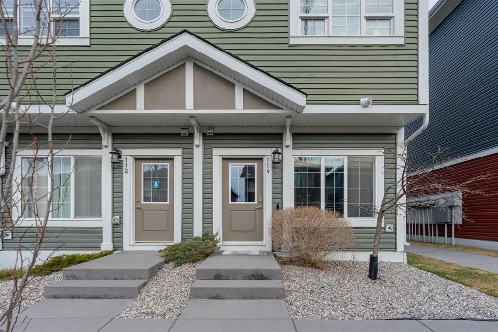 End Unit Townhome | Attached Garage | Full Driveway | 3-Storey | 2-Bedrooms | 2.5-Bathrooms | 1457 SqFt | Main Level Living Room/Den | High Ceilings | Granite Countertops | Stainless Steel Appliances | Open Floor Plan | Spacious Bedrooms with 4pc Ensuite Bathrooms | Upper Level Laundry. Welcome to 114 Evansridge Common NW; a beautiful 3-storey end unit townhome located in the heart of Evanston with parks, playgrounds, schools, shopping all nearby! Inside the main level is a foyer, family room, storage and the utility room. The family room is a great space for seating or a home office! This level has a door that leads to a walking path and guest door! Head up the stairs to the main level that holds the kitchen, dining and living rooms with an open floor plan! The kitchen is finished with granite countertops, ample cabinet storage, stainless steel appliances and a peninsula with barstool seating. The dining area open to the kitchen makes this the perfect home for entertaining guests. The living room is bright with natural lighting and as its framed with large windows and a door to the balcony. The balcony is a great addition and is large enough for a BBQ & dining set or lounge furniture! This main level is complete with a 2pc bathroom. The uppermost level has 2 primary bedrooms with 4pc ensuite bathrooms and large closets. The laundry located on this upper level is an added bonus as its near the bedrooms! This home has A/C hookups ready for a quick install too! The attached garage and driveway allows for 2 vehicles to be parked at any time plus street parking is available just outside of the complex! Hurry and book a showing at this gorgeous townhome today!