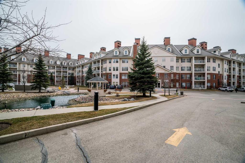 Former show suite in this amazing complex is being offered for the first time by the original owners. A bright home with lots of natural light is designed to maximize space utilization, creating a splendid comfortable home. Well-appointed and well maintained, it features 9' knockdown ceilings, large windows that open at the top for comfortable natural air flow, engineered hardwood floors, central air conditioning, and in-suite laundry. As you enter, take note of the spacious foyer with room for a seat and convenient entrance closet. Step forward and check out the kitchen with ample wood cabinets, corner pantry and breakfast bar. The dining room offers the flexibility to extend the table for larger gatherings. A living room that is elegant and inviting has an abundance of natural light and a cozy electric fireplace with circulating fan. The breakfast nook is located close to the kitchen and living room for those casual meals. At one end is the oversized primary bedroom with sitting area, 3-piece ensuite and walk-in closet. On the other side the second bedroom/den Is a great space to work read or relax. It is totally functional as a bedroom with a private entrance to the main bath. There are extra cabinets in the bath and laundry rooms. Bathrooms are equipped with timers on the fans for better humidity control. The washer/dryer and freezer were new in 2023 and a new air conditioning coil for the unit was installed last year. Location is very important and this unit has a great one on the south east side with a great view of the lake and a water feature below. It is located in a wonderful complex with an amazing number of amenities. Check out the photos to get an idea of the options available to you. Name your activity of interest and you will likely find it here. Most of the residents are long-term and wonderful relationships have developed through shared interests. The building is well insulated between floors with cement in the floor composition. Parkade ramps and cement pads at main doors are heated for your safety. The 1000 buiding provides 3 elevators and 3 garbage shuts and rooms for your convenience. A titled heated parking stall is located close to an elevator. This complex is beautifully landscaped with trees, shrubs, water features, sitting areas, walkways and paths. There is every opportunity to enjoy the outdoors in a magnificent area. If you are looking for a change in pace and lifestyle, this 40 plus complex awaits your arrival.