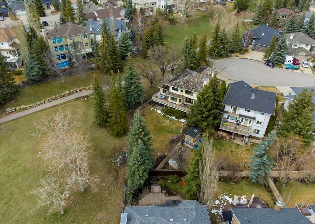 Location, location, location!! Amazing 5 Bedroom, 3.5 bath, walkout family home in a peaceful, extremely private setting.This large treed lot is surrounded by green space at the end of a quiet cul de sac. Enjoy southwest horizon views, sunshine, sunsets, wildlife spotting and birdsong from the 41’ x 14’ deck and secluded covered patio, both overlooking a treed park in the heart of Evergreen Estates. 3668 sq.ft. of enduring quality in this custom build by “California Homes” featuring oversize windows that flood living areas with natural light all day and highlight pastoral park-like views in every room. Large, functional living room and dining area with vaulted ceilings (plus skylight). Family size kitchen and eating area (new tile floors) with adjoining and impressive main floor family room (hardwood, fireplace & built-ins) both overlooking the spacious deck, yard, and park. 4 generous size upper bedrooms including a massive 17’ x 16’ owner’s suite with vaulted ceilings, luxurious hardwood, updated shower, and double vanity. Fully finished walkout level with large functional family and games rooms, 5th bedroom/office & full bath. Main and lower levels offer well connected indoor/outdoor space with ample play areas inside and out. Easy care yard with rubber mulch, chain link fence and underground sprinklers. Oversize 25’ x 23’ garage plus room for 3-4 vehicles on the driveway. Recently inspected, maintained hardy & thick cedar shake roof (not original shakes-receipts available), in floor heating (rough in). Covered front porch, roomy welcome foyer, main floor laundry/mud room with side door, hardwood, ceramic tile, skylights in upper bath & hall, large functional spaces throughout. A short stroll to Fish Creek Park pathways & natural areas. Close to schools, shopping, and easy commuting routes including the ring road, the LRT. A rare opportunity in prestigious Evergreen Estates! Click 3D = interactive floorplan!