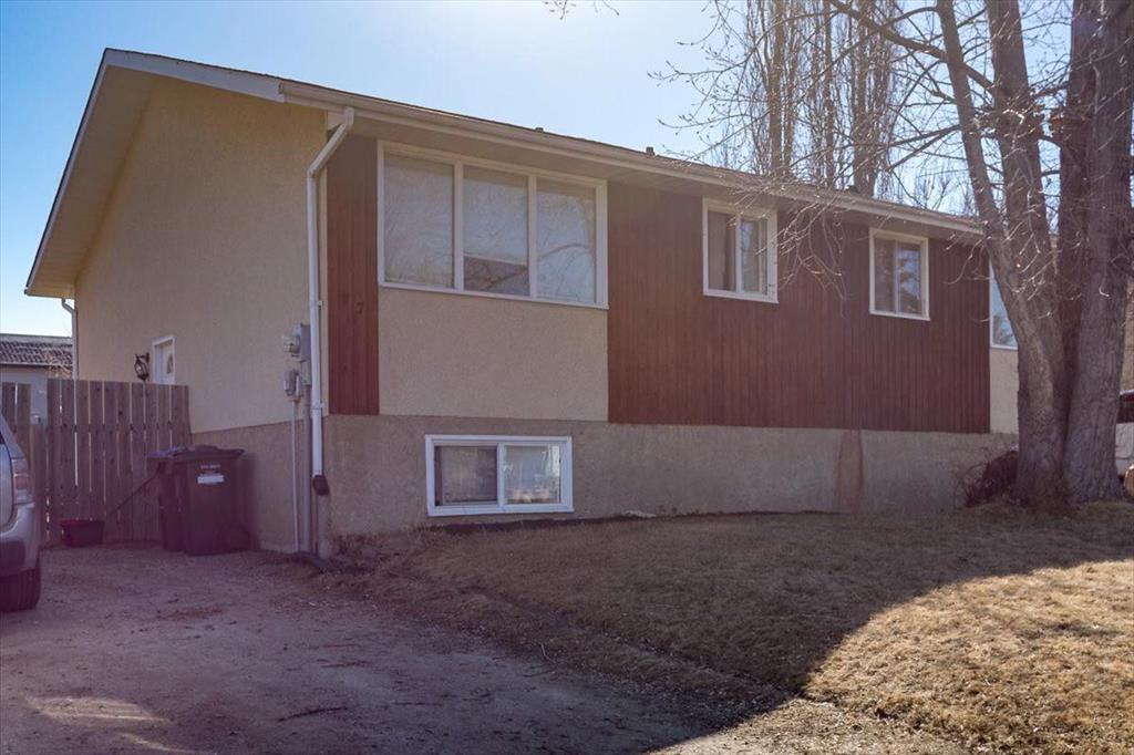 Welcome to this charming 3bedrooms, 1 /1 bathroom duplex in Sylvan Lake. This ideal bi-level is perfect for a first-time home buyer or an investor. The main floor offers open plan family room, 2 bedroom and a bathroom. Large rec room area in the basement and 3rd bedroom with another bathroom. Recent upgrades carpets, paint, lighting, doors, windows and hot water tank are done 2021. The yard is fully fenced with a fire pit and convenient shed!