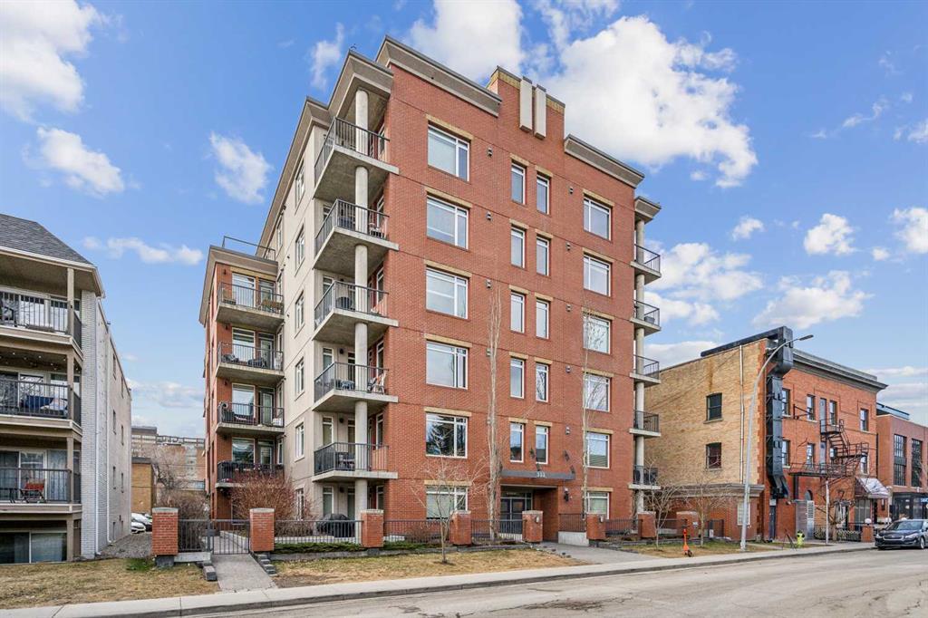 Inner city living at it's finest in the trendy community of MISSION. This 1 Bedroom + Den features new carpet and fresh paint on walls and cabinets giving it a brand new feel. This well managed complex is a CONCRETE condo building that has one of the best locations within walking distance to an array of amenities as well as the Elbow River pathway systems. Offering 9FT ceilings, front den/flex room leading into the kitchen with chic white cabinets, granite counters, breakfast bar and Stainless Steel appliances opening to the living room with large windows and glass door access out to the balcony. The bedroom is a spacious enough to accommodate a king bed with a walk thru closet into the 4 piece bathroom. A conveniently located insuite laundry completes this unit. Don't overlook the underground titled parking stall with separate assigned storage locker as well as underground visitor parking. Enjoy summer evenings with guests on the Roof Top patio for all owners to enjoy. This condo is ready for immediate possession and is move in ready!