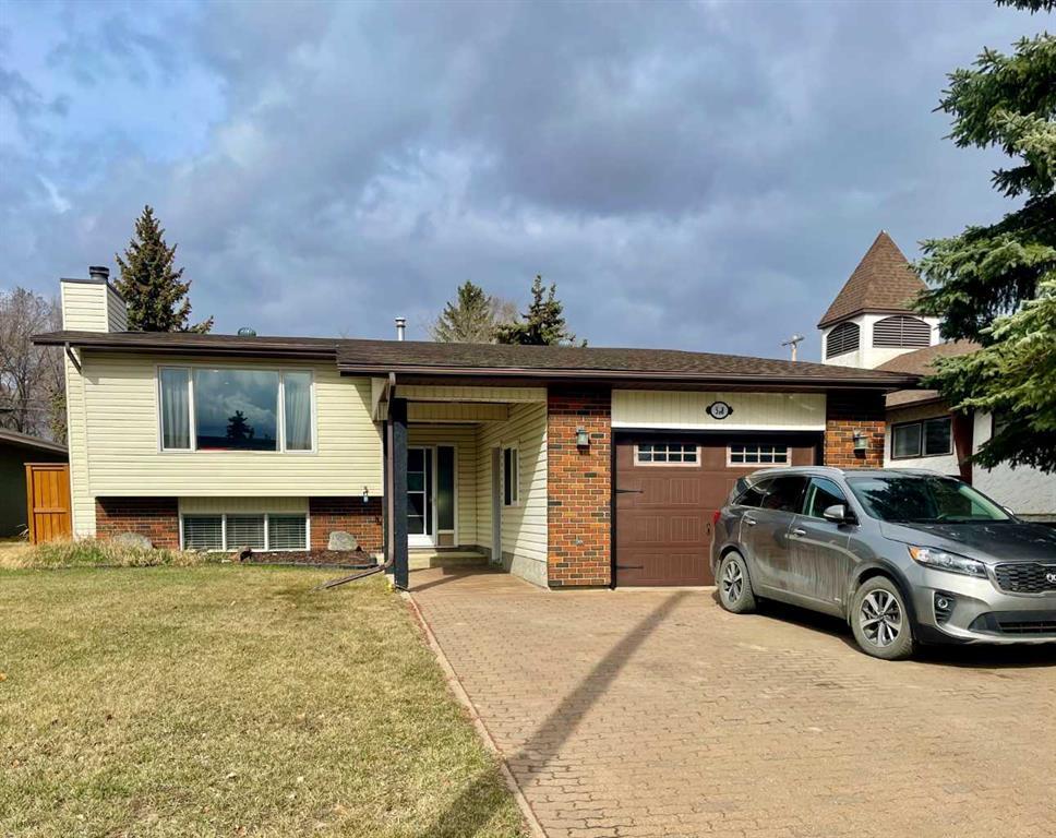 Looking for a walkout basement? This welcoming home features 4 bedrooms, 3 baths, attached garage, wood burning fireplace, walk out basement and the list goes on. A great home for entertaining inside and out. The kitchen offers ample cabinets and counter space, pantry and an attractive hood fan with an adjoining dining area. Upstairs is complete with a large living room, full bath, two bedrooms including Master w/ensuite. Downstairs might just become your favorite place to entertain or to cozy up in front of the wood burning fireplace. The family room and games area are nice and open with patio doors going outside to a private covered area. It is all set up and wired for your hot tub or use for a lounging area. Continuing on inside, there are 2 more bedrooms, 3 pc bath, laundry and access to the garage. Outside you are surrounded by a solid 6' high fence complete with a large double gate, garden area and mature trees making this yard nice and private. Make sure to check out the three skill level climbing wall on the outside of the deck! Lots of room to entertain on this 16x20 back deck featuring privacy walls. Enjoy the covered walkway to the front door, interlocking brick double driveway and attached garage. Some upgrades include newer paint, attractive wood ceiling on the main floor, newer hot water tank and recently installed vinyl plank flooring downstairs. Great location, close to the Hospital, High School, Ball Diamonds, Tennis Courts and Peace Memorial Multiplex. A great house for the family!