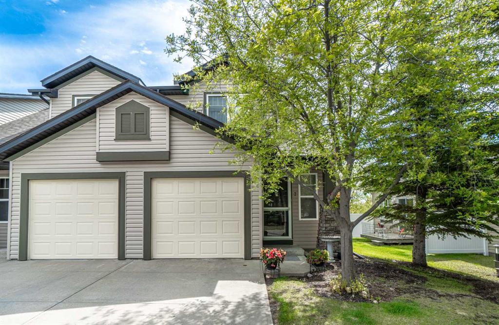 ** Please click on "Videos" for 3D tour ** BEST LOCATION IN THE COMPLEX - END UNIT AND BACKING ONTO CHURCH! Super desirable end unit in this well maintained Evergreen townhouse complex! Amazing features include: 3 generous sized bedrooms, 1.5 bathrooms, attached single garage, private and quiet back yard space, real hardwood flooring, bright open main floor with plenty of natural light, cozy gas fireplace, huge widows, neutral color palette, unspoiled basement with bathroom rough-in/lots of storage and much more! Location is a 10 out of 10 - all shopping & amenities are moments away, LRT just down the road, very easy access to new Stoney Trail/MacLeod Trail and plenty of pathways for walking & biking just outside your door!