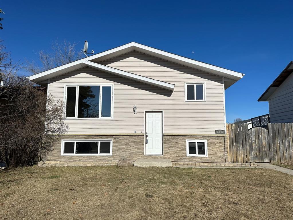 Nestled in the heart of Rocky Mountain House, this charming 5 Bed, 2 Bath bi-level is a great family home. With a double detached garage that is insulated and drywalled and has room for RV parking! The bright and open main floor has a huge living room and functional kitchen. 3 Bedrooms upstairs and a 4 piece bathroom. There is a second door leading to the backyard that features fruit producing apple trees! Downstairs you have 2 more bedrooms, a 3 piece bathroom, and a massive family area. With a little TLC and love, this home has a ton of potential and is very affordable! Located close to schools, shopping, and walking trails.