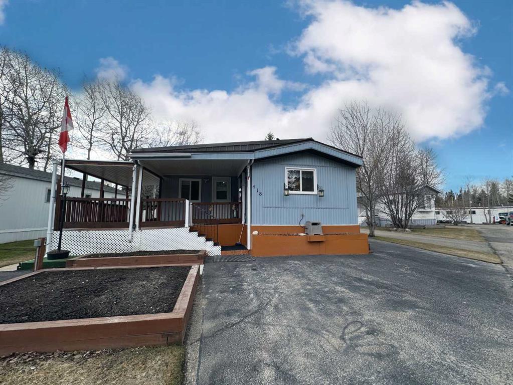 Pride of ownership is evident in this 1254 sq ft home. Located in Pine Ridge Village, a nice quiet neighbourhood tucked in beside the hill shopping area, with mature landscapes within a well maintained park. Walking up to the home you're greeted with a covered porch area leading into the boot room with storage to tuck all your necessities away. In the addition area theres a 20x12 family room/office that leads back into the enclosed hot tub area for privacy while enjoying the warmth of the 4 person tub. The kitchen is located at the front of the home and is open to the dining area and living room. There's a pellet stove to add a nice cozy aesthetic to the room. The primary bedroom is grand all on its own with room for a king sized bed and dressers along with closets that line the whole width of the room. Convenient laundry situated in the hallway leading to the back bedroom and the 4pc bath completing this lovely home. Outside the yard is manicured with garden beds out front, walking stones and 3 sheds for an abundance of storage.